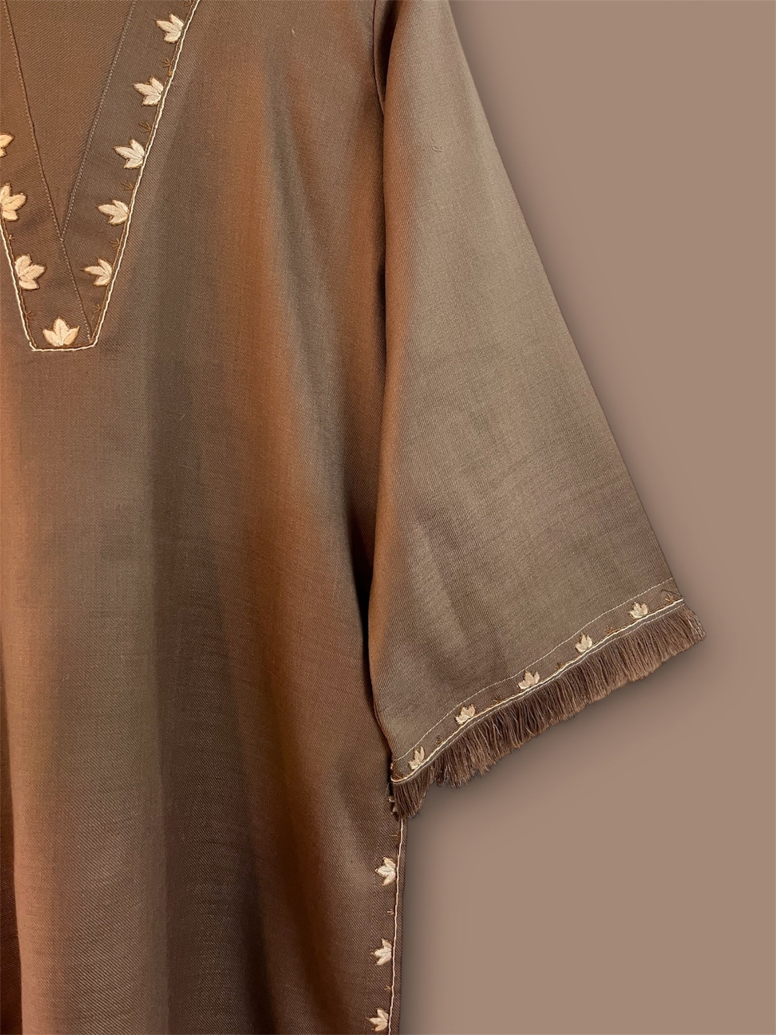 Crafted for understated winter elegance, this brown kurti is made from premium count wool, offering warmth without compromising on comfort or style. The design features minimal hand embroidery, thoughtfully placed to enhance the silhouette while keeping the look refined and versatile.