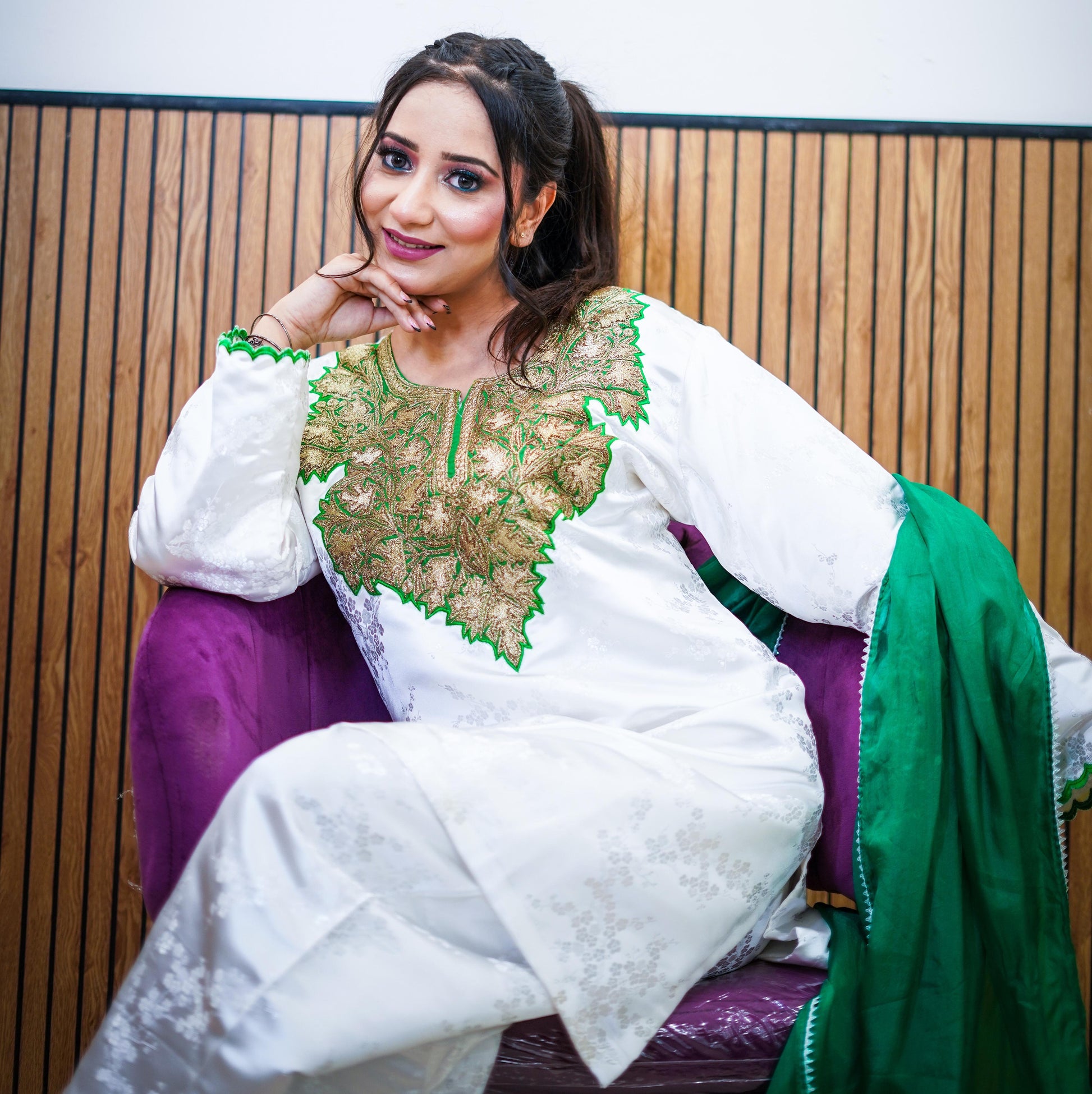 shirt and pants with Tilla patch on Neck line and with green embroidery on sleeves